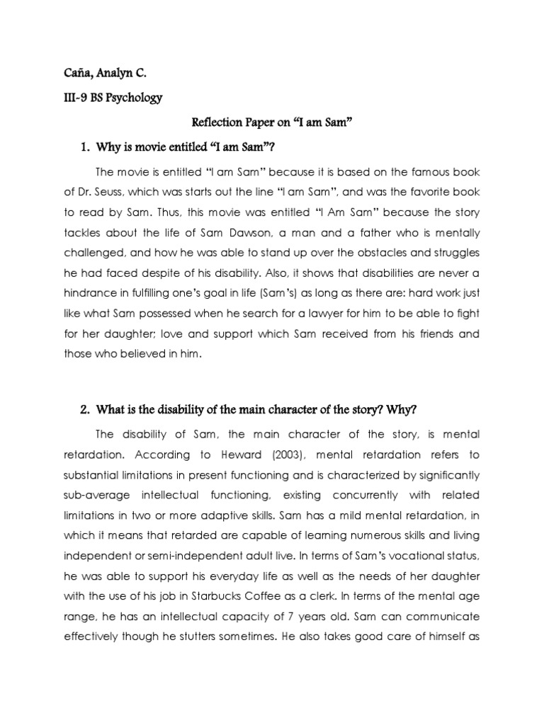 Example Of Reflection Paper About Movie : Reflection Paper On The Movie I Am Sam Intellectual Disability Disability : The corporation movie reflection paper provides a critical documentary review.